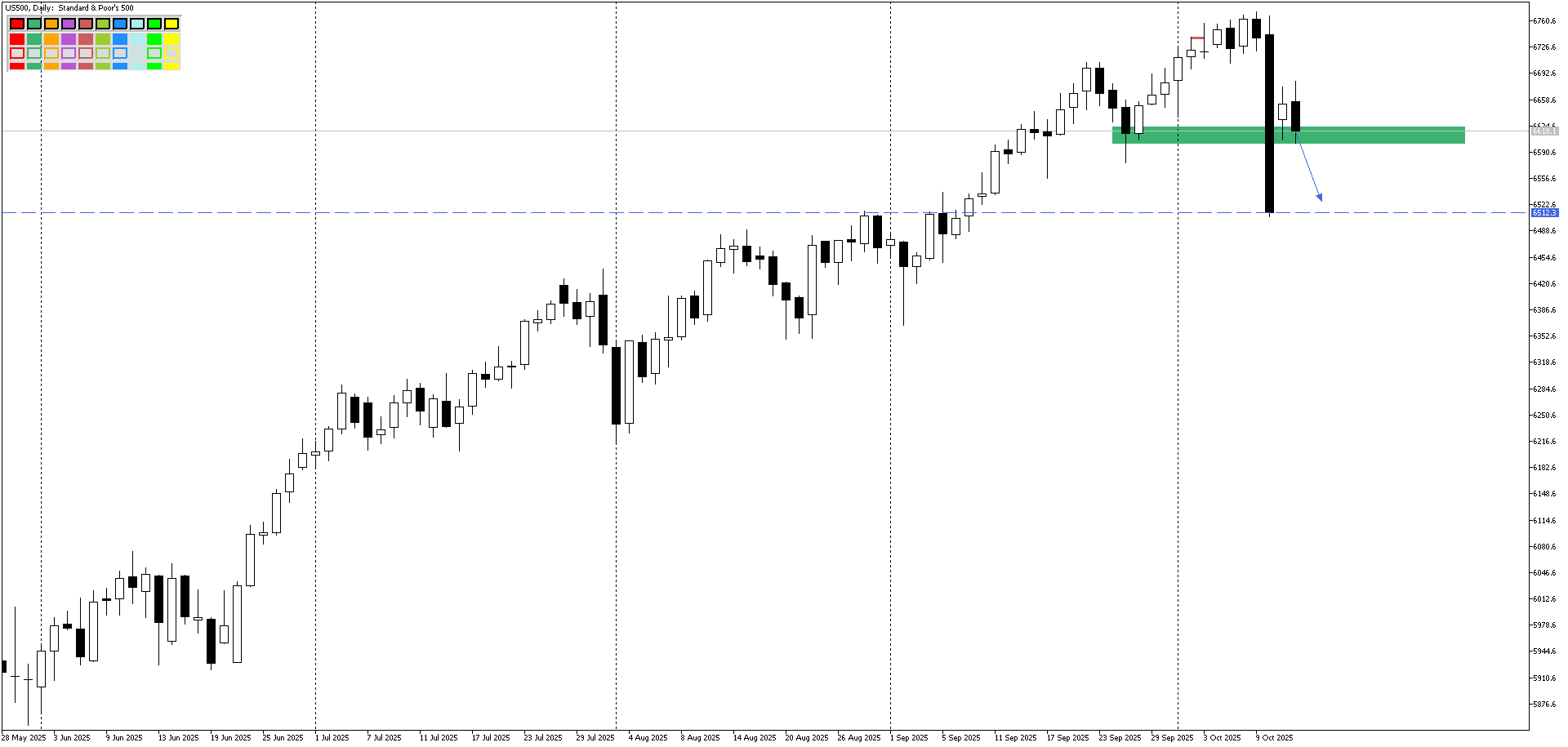 Например, слом поддержек и закрепление цены ниже их может открыть дорогу на предыдущий уровень по SP500.