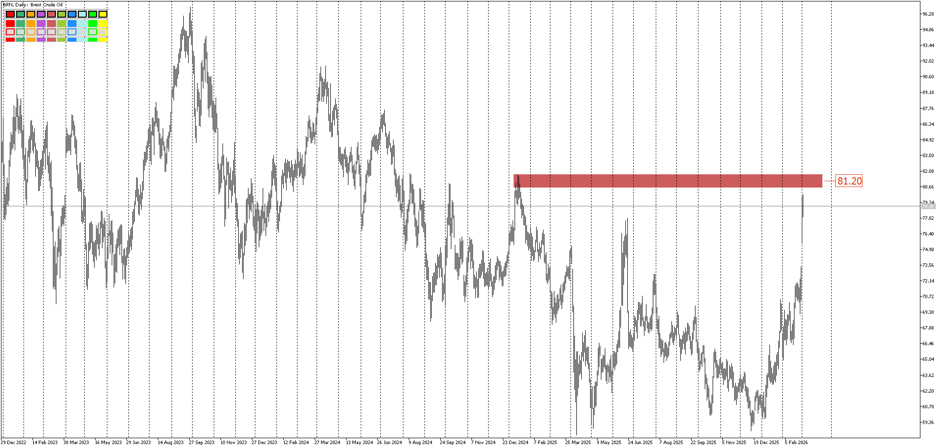 81.20 – хорошая зона, за которой нужно наблюдать. Появление ложного прокола на ней даст сигнал к снижению цен. Закрепление за ней (например, при затягивании конфликта, либо при его резком усилении) откроет дорогу к ещё одной волне покупок.