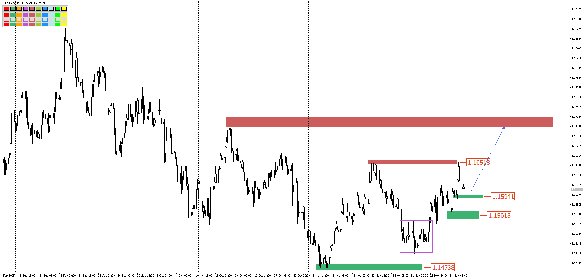 Но не стоит сильно переживать: у нас есть новости, после которых можно вернуться к анализу графика, и, если указанные нами уровни устоят, можно с них поискать покупки и тогда можно целью взять 1.17200