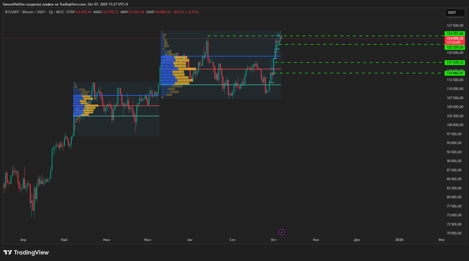 Если котировкам удастся прорвать 126.500 в ближайшие дни, то на стопах продавцов удастся доехать до первой станции — область 128-130к будет неплохим местом для фиксации прибыли. В огромной наторговке мы копимся с середины июля и хотелось бы увидеть прострел этого боковика. Для тех, у кого нет позиций, лучше подождать явного прорыва импульсом на D1: пока пробой очень ленивый, нужны дополнительные драйверы для роста.