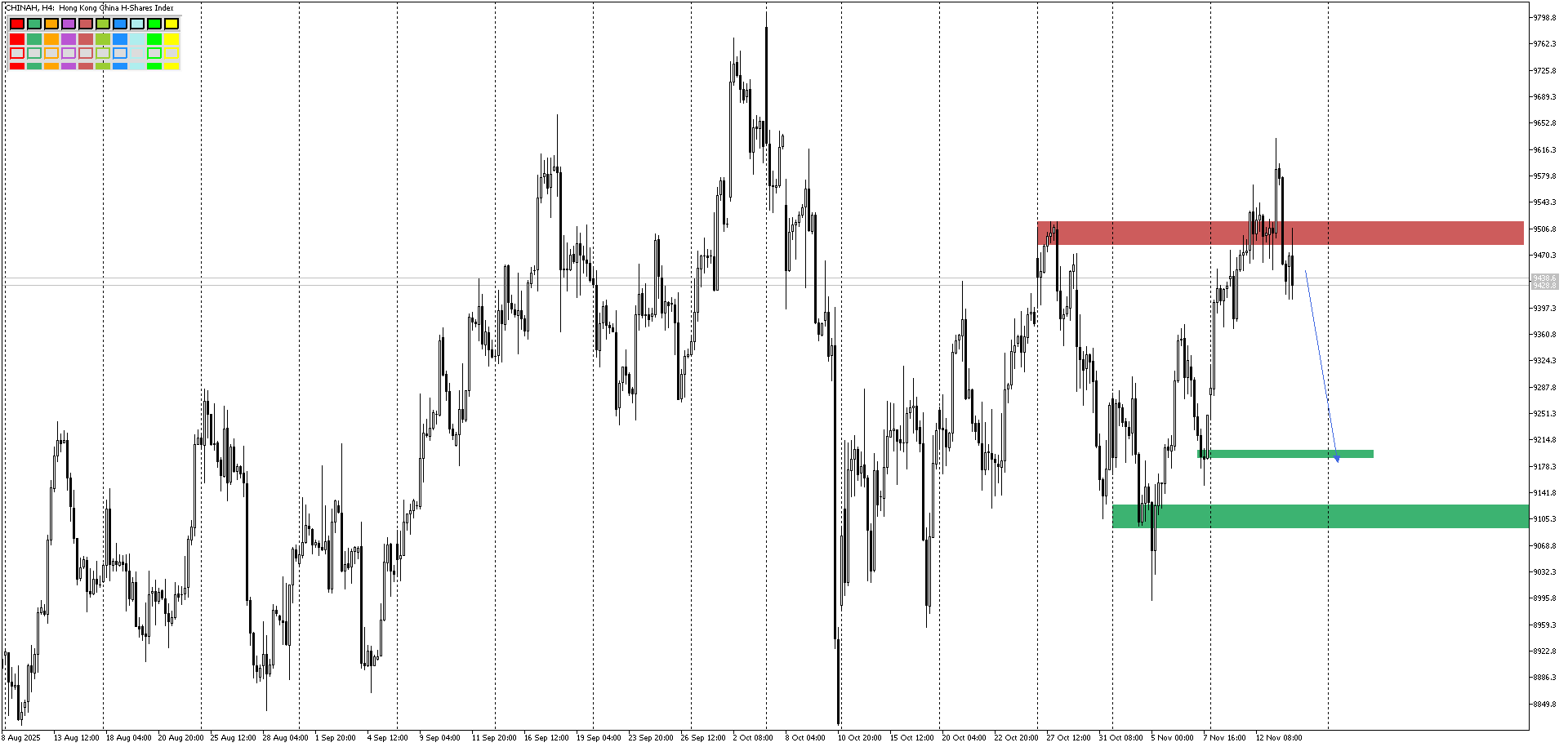 Если у CHINAH подтвердится ложный пробой 9500, то он вполне может спустится в область 9100.