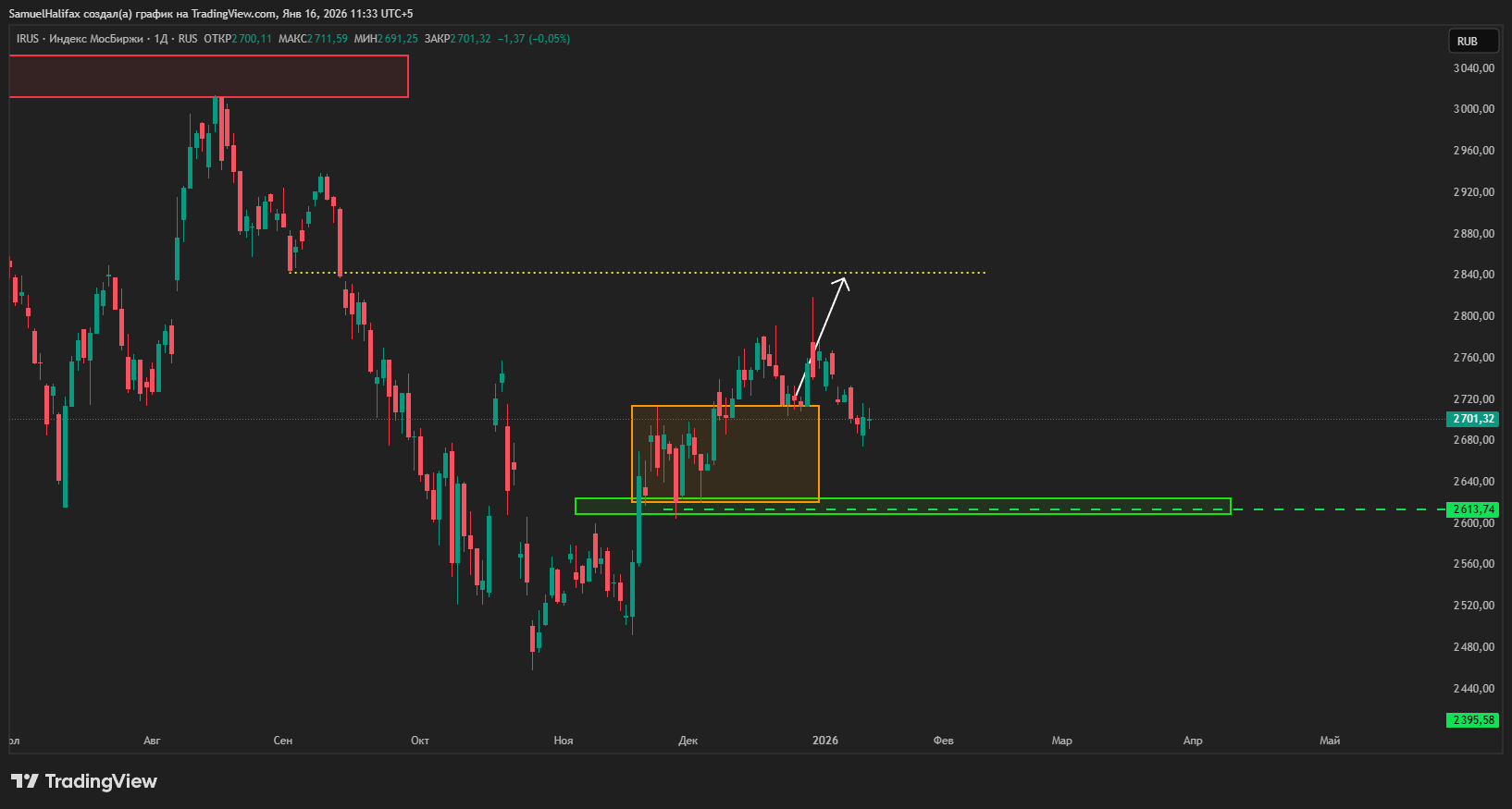 А вот на «московской» улице явно перевернулся КАМАЗ с пряниками: на позитиве от переговорного процесса (хотя пока есть только обещание приехать в гости одной из сторон) индекс Мосбиржи уходит вверх гэпами и прибавляет около 1.5% к цене открытия недели.