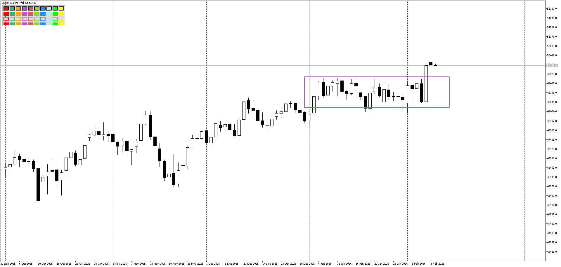 Также мы можем увидеть, что SP500 сейчас находится в огромном накоплении, и при прорыве его в любую сторону откроется окно хороших возможностей – движение будет сильным, ведь чем дольше было накопление, тем сильнее будет разрядка.