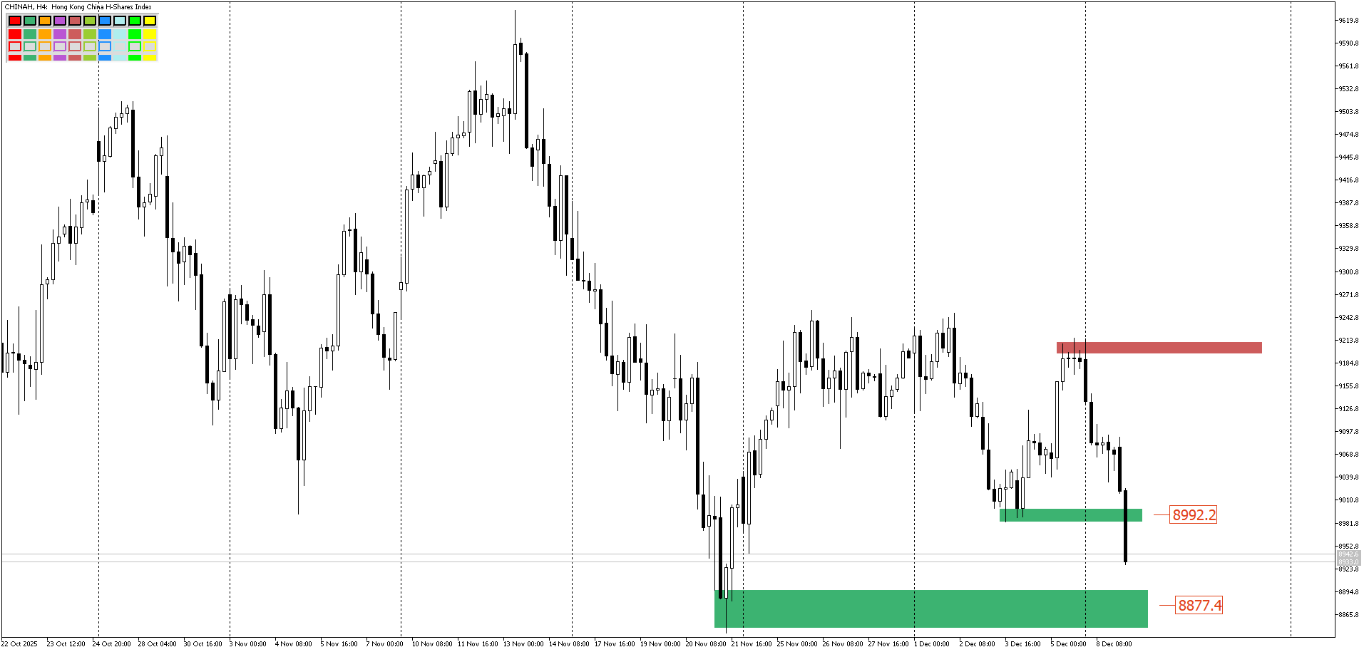 Гонконгский CHINAH уходит ниже 8992 и склонен пройти ещё ниже.